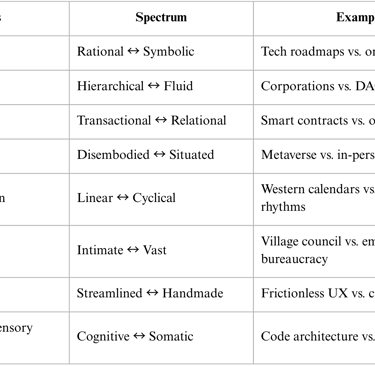 - Community and governance architecture: Structuring protocols and interaction spaces to nurture trust, coherence, and shared purpose.